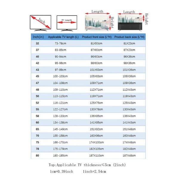 Compatible with most standard 43 inch LED and LCD televisions from major brands. Designed to cover the screen and frame securely.